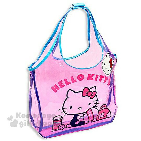 〔小禮堂〕Hello Kitty 防水手提袋《粉藍.網球》